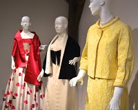 This exhibition is set up with exhibit to mimic a 20th century fashion show, with mannequins lined up as if on the runway. Fashions are arranged chronologically, beginning with a 1947 design by Christian Dior. At the end of World War II, women longed to replace fashion’s stiff, square shoulders and straight lines. Dior’s more romantic look took the fashion world by storm.” Dior’s success allowed Paris to reassert its world leadership of haute couture following its decline during the war.