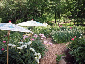 When Kasha and David Furman founded Cricket Hill Garden in 1989, it was one of the first nurseries in the United States to focus on rare Chinese tree peonies. These special plants have blossoms that are among the largest, most colorful and most fragrant of all flowers. They cultivated over 500 different hybrid peonies, choosing the hardiest, most vigorous and fragrant to propagate and sell. Over the years a rocky, wooded hillside has been transformed into a six-acre peony display garden they call Peony Heaven. The family, now including son Dan Furman, enjoys sharing the beauty of the garden in peak bloom in May and June.