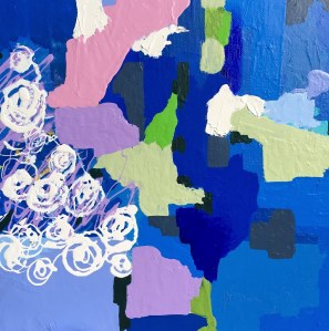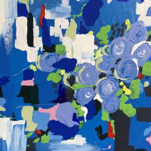 She is always experimenting with different media and lately has been working with oils, acrylics and inks. Reflected in her work are the bold colors of indigenous crafts, clothing, and textiles that she was surrounded by growing up in Peru. After years of traveling and experiencing new creative forms, the influence of Peruvian artwork’s vibrancy has informed her passion for abstract depictions of nature. This series of paintings is inspired by her latest trip to the coasts of both Italy and Spain, where the deep blue colors of the Mediterranean waters were always in her view.