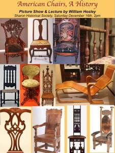 On Saturday, December 16 at 2 p.m. the Sharon Historical Society hosts scholar William Hosley in his debut lecture on the history of chairs. This picture show and lecture will delve into chairs as one of the oldest most universal elements of household furnishing in human history.