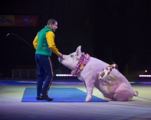 The pigs were acquired from farms and his dogs, with the exception of a couple of standard poodles, are rescues with a talent for jumping. The animals have their own climate controlled trailer and Mr. Klose is certified by the U.S. Department of Agriculture, which regulates zoos, circuses and marine mammal parks under the Animal Welfare Act and requires regular inspections. The animals have regular vet care and the pigs get regular hoof trimmings and are fed a special diet.