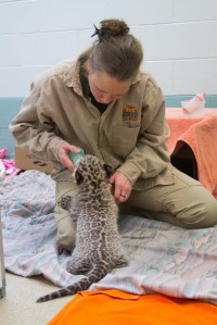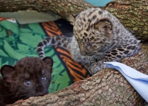 Within the first 24 hours, these rare cubs had to be taken away from their first-time mother because she was over grooming them with her rough tongue. Due to mon’s zealous overgrooming the black female leopard cub had to undergo emergency surgery for her tail. Dedicated and professional zoo “moms and dads” keep an eye on the cubs 24/7 and are responsible for feeding them, monitoring their health and making sure they have plenty of fun things to play with. Zoo staff affectionately called leopard moms and leopard dads watch the Cubs 24/7, clean up after them. track their health, and feed them six times a day. They also monitor their growth and weight and food intake as they weaned. Without the professional and dedicated staff, the world might have lost these rare creatures.