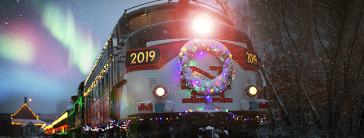 In this busy season, Santa often has to work late, and special Northern Lights Limited tours from Thomaston let passengers make a stop at Santa’s Train Workshop, where he makes time to come aboard and greet everyone.