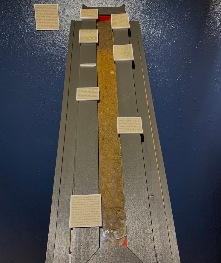 The centerpiece of the exhibit is the display regarding the Templeton Dig Site in Washington. Templeton is Connecticut’s first known Paleoindian site and, until recently it was the oldest site in all of southern New England. This exhibit includes explanations of why this site is so important, how it was excavated, what was found, an example of the tools excavators used, and plans for future excavations. A second display, the Brian B. Jones dig site located in Avon, Connecticut is also examined and discussed.