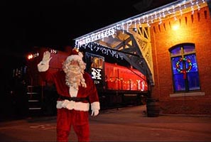 The Santa Express in Thomaston This 1920s vintage train travels along the scenic Naugatuck River for a warm, cozy 80-minute round-trip ride. Santa brings along Mrs. Claus and some friendly helper elves to visit with each child on board. Trains depart from the historic 1881 station in Thomaston Fridays, Saturdays, and Sundays December 3,4,5,9,10,11,12,17,18, and 19. Starting Christmas week the train will run on December 20,21,22 and 23. The last train of the holiday season will run on December 30th. On Saturdays and Sundays, the train runs at 12 noon, 2:15, 5 p.m., and 7:15 p.m. On Fridays and during Christmas week the train runs at 5 p.m. and 7:15 p.m.