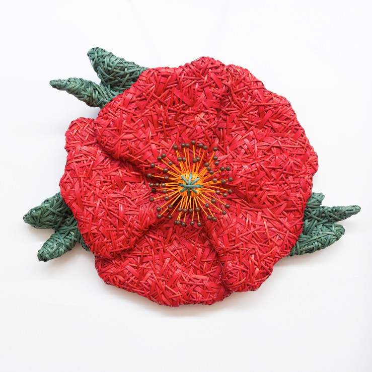 Her evocative pieces, such as the handwoven poppy Amapola Flora and the narrative-rich A Journey in Transformation, showcase a unique mastery of color, texture, and imagination. Each work is more than just a visual statement; it’s a tapestry of stories—bittersweet vines and reeds woven together to invite reflection and wonder.