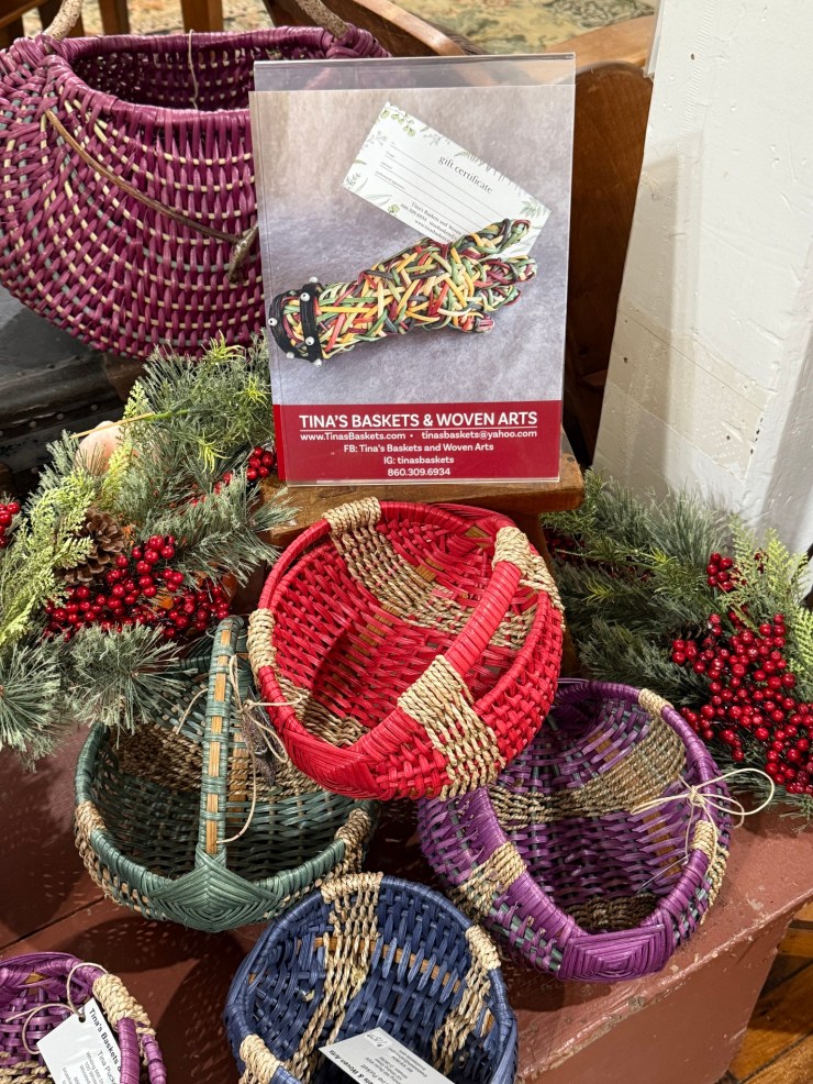 Tina’s studio is open weekends in February from 11 AM to 4 PM or by appointment for a private shopping session. Gift certificates for weaving classes and baskets are also available. For more information visit tinasbaskets.com or call (860) 309-6934.