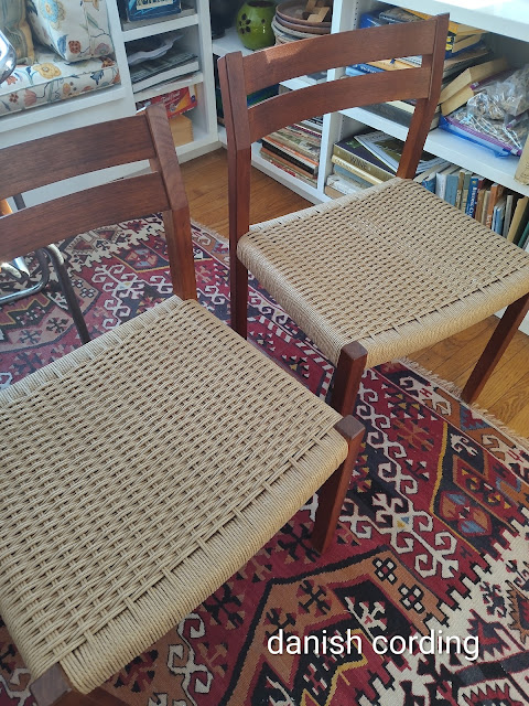 Susannah’s path to chair weaving began with a deeply personal motivation: a family heirloom. “When my in-laws downsized, they passed on a few pieces of furniture, including a pair of worn Danish modern chairs,” she recalls. Intrigued and determined to restore them, she dove into online tutorials. In 2019, she re-wove the chairs. What many craftspeople love about rushing and caning is the almost meditative rhythm of wrapping and knotting. There is something magical about watching the geometric patterns gradually unfold, transforming a tired chair back into both beauty and usefulness. For Susannah, each woven chair is more than just a piece of furniture; it’s a labor of love and a thread connecting decades of use.
