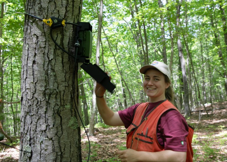 Guided by Dr. Tracy Rittenhouse, two UConn undergraduates will use acoustic monitors to capture bat activity at 30 distinct sites throughout the forest. Dr. Devaughn Fraser, a wildlife biologist at CT DEEP will also contribute her expertise. Supporting them, a Master of Energy and Environmental Management intern, guided by Dr. Chadwick Rittenhouse, also of UConn, will leverage remote sensing to refine detailed maps of forest stands, wetlands, and management histories in partnership with GMF’s forester Kate Regan-Loomis. Three of GMF’s summer forestry interns – its 88th cohort – will conduct on-the-ground surveys, gathering data on forest tree species composition and structure. Together, these student researchers will create a robust dataset linking bat activity to habitat features across over 1,000 acres.