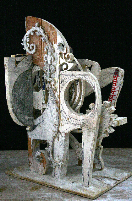 A narrative is apparent in all of Vijay Kumar’s artworks. When Vijay was a child, he and his family left their home, during the religious strife that troubled India as the country gained its independence from Britain. Traveling the world — from India to the Middle East, Europe and the United States — his artistic focus has centered on the geometry of urban spaces. In the fall exhibition, many pieces are untitled and are essentially architectural, linear jumbles such as stacked houses and buildings. The eighteen prints in the series “India Portfolio,” reflect the sorrow and loss of the refugee. In the background, a New York Times article from Dec 11, 1992, published the headline “Hatreds of India.” Abstracted figures set in conflict or in positions of mourning dominate the series.